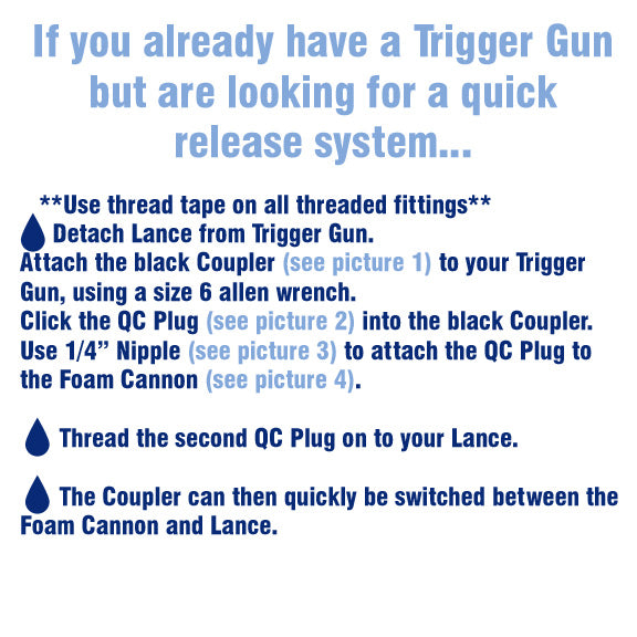 Basic kit for quick connect switching between your Foam Cannon and the pressure washer Lance when you already have a Trigger Gun. Includes standard pressure washer parts you'll need to attach and use with ProLine's Truck & Tractor Wash and Wash & Wax detergents!