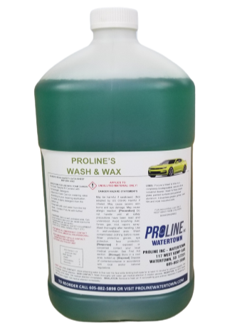 ProLine's Wash & Wax is a final wash detergent; natural citrus and company exclusive. Penetrating foam and paint protectors leave a clean, shiny surface. A concentrated, completely biodegradable, mildly alkaline, caustic free, non-hazardous cleaning power with a hint of wax; especially formulated to dissolve grime, road film and most industrial soils from your personal vehicles. Made in the USA.